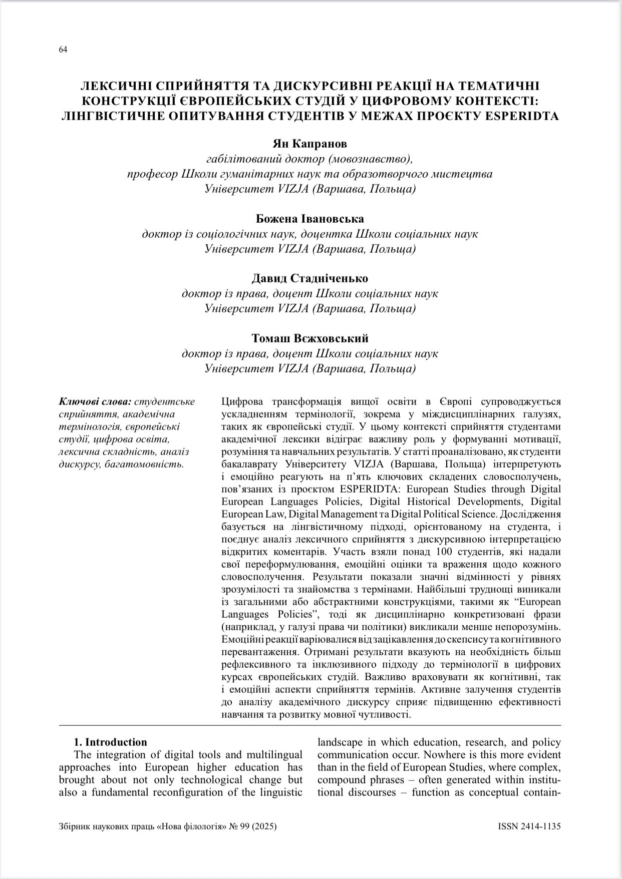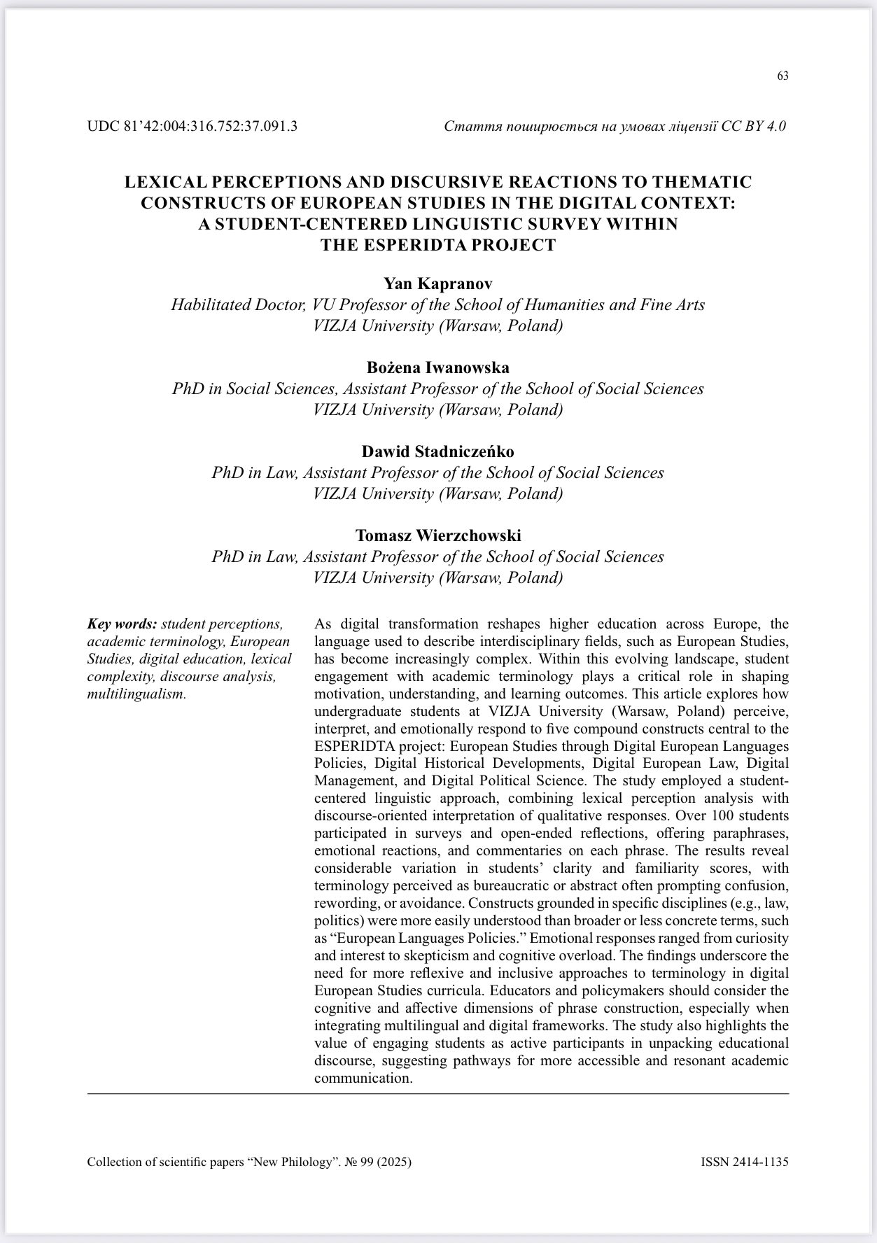 #ESPERIDTA #ErasmusPlus #JeanMonnet #EuropeanStudies #DigitalEducation #VIZJAUniversity #AcademicPublication 🇪🇺